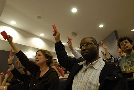 The SA amendment was overwhelmingly passed: the amendments from the CPGB, CMP and Workers Power were overwhelmingly rejected