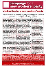 We, the undersigned, agree to campaign for the establishment of a new mass workers’ party in England and Wales.